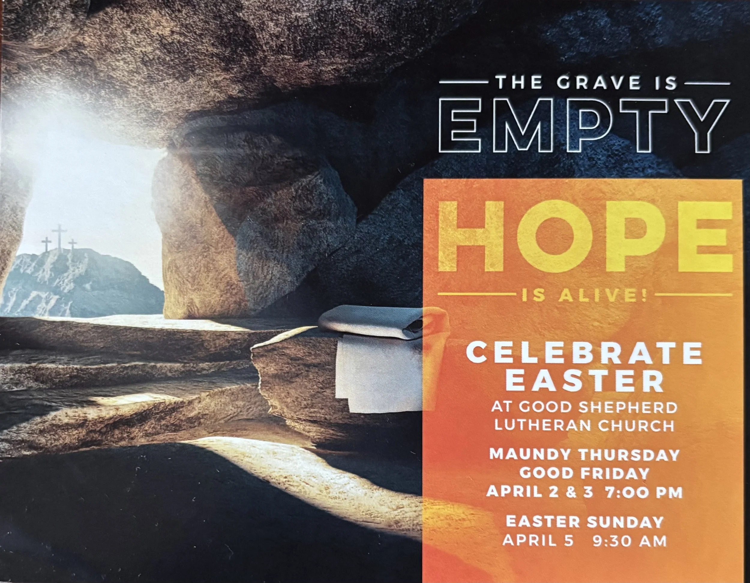 Sunday School and Adult Bible Study at Good Shepherd is at 11:00am on Sundays. Come Join Us.